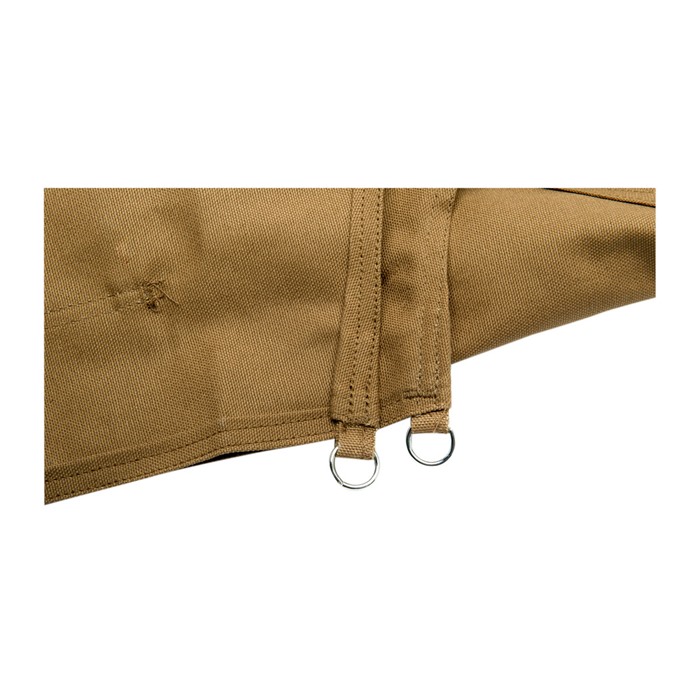 SHORT PREMIUM SHOP APRON är tillverkad av det bästa, tätt vävda, 2-lagers garnet, 100% bomull, samma material som används för att tillverka högkvalitativa, isolerade arbetskläder. För att säkerställa hållbarhet används lösningsmedels- och oljebeständig nylontråd genom hela produkten. Allt är kraftigt förstärkt med sömmar som är rullade, dubbelsydda och avslutade, och alla hörn och stresspunkter är bar-tackade för extra styrka.