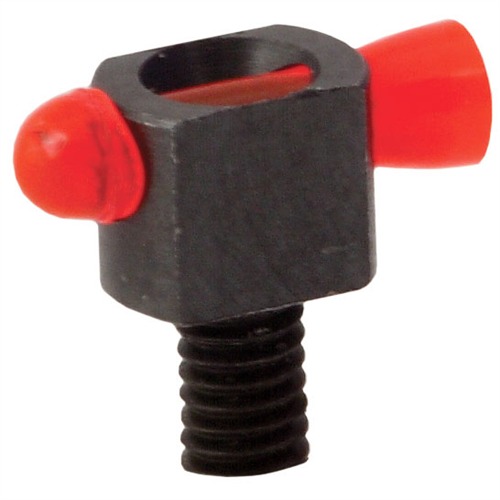 SPECS: Sight Base - Steel, blue finish. .204” (5.2mm) long x .137” (3.5mm) wide. Bead - Polymer, red. .362” (9.2mm) long x .106” (2.7mm) diameter. Sight Height - .167” (4.2mm) high from top of barrel to top of bead. 6-48 fits Remington, Weatherby, SKB and Ithaca. 3-56 fits Browning Citori target guns, Benelli, Beretta, Ruger, and Winchester. 5-40 fits Mossberg. 3mm x .5 fits Browning Gold and Citori field guns. 3mm x .6 fits Browning Citori Hunter.