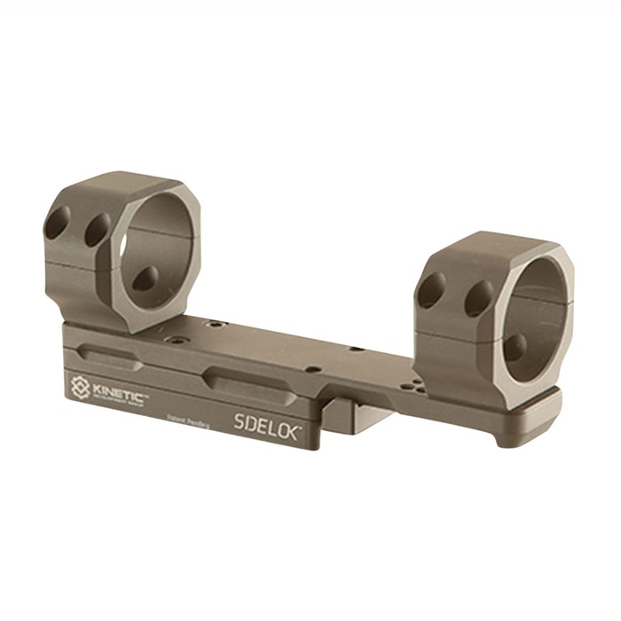 KDG’s 1" Sidelok Modular Optic Mount provides user-configurable options that made it one of the most versatile QD scope mounts available. Of course, you can quickly clamp it to any Picatinny receiver rail, then remove it just as fast, with one hand, simply by pressing the release button at the front. The Sidelok Optic Mount’s innovative locking system makes it virtually impossible to unintentionally release the mount. Cam lock system ensures the Sidelok will fit all Picatinny rails, even those that are out of spec. The rings on the Sidelok Modular Optic Mount can moved forward or backward to avoid interference with objective bells, turret knobs, or magnification adjustment collars. They are CNC-machined and wire-EDM cut to be as precisely concentric as possible. Top- and bottom-halves are machined together, as a unit, and given Fully machined high-grade aluminum alloy Top & bottom halves machined together, as a unit, for best alignment Witness marks help the user keep the correct top mated to its matching bottom Type 3 hardcoat anodized, matte black The rings on the KDG Sidelok Modular Optic Mount are removable, so you can swap rings to fit a different-diameter scope tube without having to buy a whole new mount.