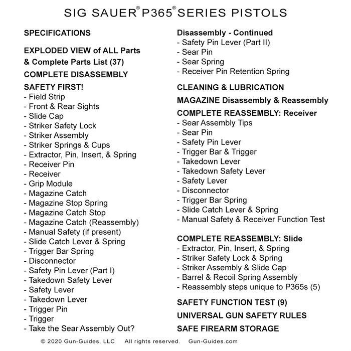 SIG P365 SERIES PISTOL GUN GUIDE Säkerhetsinstruktioner
