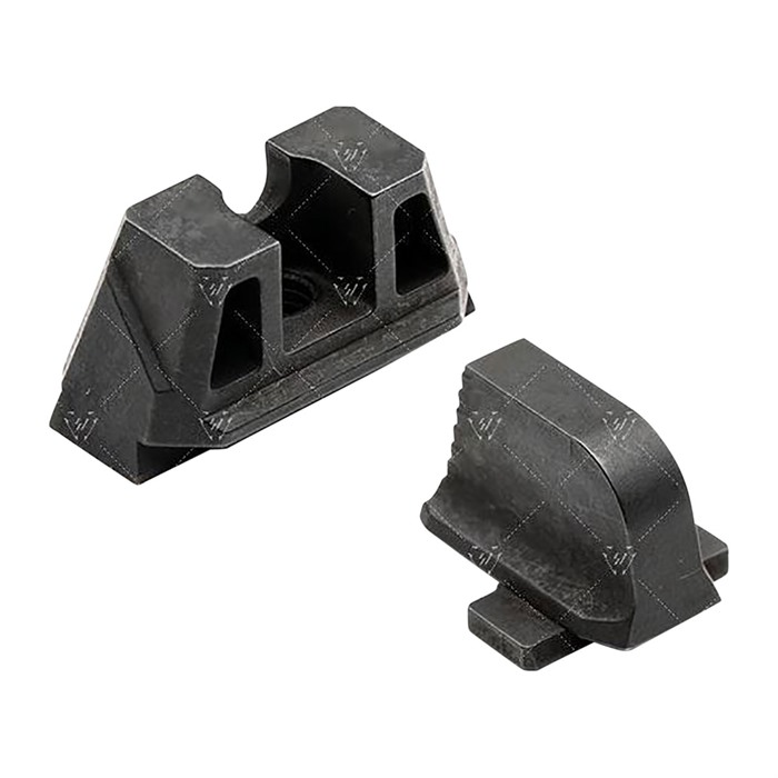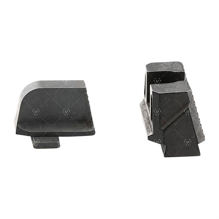 The Strike Iron Sights (Suppressor Height) give you an elevated sight picture for a red dot or suppressor pistol setup. The front and rear sights sit at an absolute co-witness position with a slide mounted red dot. Designed to help with proper sight alignment and keep the shooter's eyes focused, there is natural light that is seen on both sides of the front sight between the u-notch rear sight. Steps placed in the rear of both sights help angle and reduce unwanted glares or reflections out of your eyes. Lines and angles designed to use natural light reflections and shadow play to keep user's eye aligned and focused on the target. The rear sight is designed with a negative angle so that the shooter will see the back wall as dark as possible to give total focus on the sights. The line running down the middle of the rear sight is there to catch light from above and create a ""line"" illusion in which the shooter can use it to assist in aiming. The front sight can be painted to user’s color preference or use glow-in-the-dark pain to customize the look and use of the sights. Made from SUS630 hardened stainless steel, the Strike Iron Sights For (Suppressor Height) is engineered to be as robust as possible while giving you one of the most budget friendly options on the market. The Strike Iron Sights (Standard Height) give you the best affordable option so you can throw away those plastic or boring OEM steel sights. Designed to help with proper sight alignment and keep the shooter's eyes focused, there is natural light that is seen on both sides of the front sight between the u-notch rear sight. Steps placed in the rear of both sights help angle and reduce unwanted glares or reflections out of your eyes. Lines and angles designed to use natural light reflections and shadow play to keep user's eye aligned and focused on the target. The rear sight is designed with a negative angle so that the shooter will see the back wall as dark as possible to give total focus on the sights. The line running down the middle of the rear sight is there to catch light from above and create a ""line"" illusion in which the shooter can use it to assist in aiming. The front sight can be painted to user’s color preference or use glow-in-the-dark pain to customize the look and use of the sights. Made from SUS630 hardened stainless steel, the Strike Iron Sights (Standard Height) is engineered to be as robust as possible while giving you one of the most budget friendly options on the market.