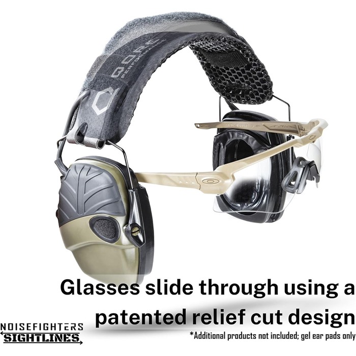 NOISEFIGHTERS® Sightlines Gel Ear Pads – med patenterad reliefskärning som gör att glasögonarmar kan glida igenom för att förhindra huvudvärk och minska ljud. Dessa innovativa ersättningskuddar är tillverkade i USA och erbjuder en överlägsen ljudisolering och långvarig dämpning för längre användning.