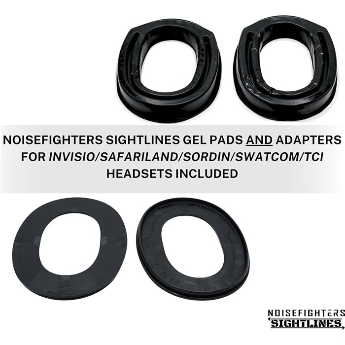 SIGHTLINES GEL EAR PAD ADAPTER PLATES W/ADHESIVE BACKING Noisefighters® Sightlines Gel Ear Pads – with patented relief cut for glasses arms to slide through to prevent headaches and reduce noise Upgrade your headset experience with Noisefighters Sightlines gel ear pads. Made in the USA, these innovative replacement pads feature a patented relief cut feature that allows your glasses to pass through comfortably, eliminating the frustration of headset pressure on your frames. Crafted from premium silicone gel and polyurethane materials, they provide superior noise isolation and long-lasting cushioning for extended wear. Compatible with most popular headsets, these versatile ear pads offer a customized fit and enhanced comfort. Whether you are sport shooting, operating machinery, or enjoying your favorite tunes, Noisefighters Sightlines ensure an immersive audio experience without compromising your hearing or comfort. Upgrade your hearing protection today and experience the difference. Their design features a rim to slide under the clips on headsets like Howard Leight® Impact Sport plus a non-permanent, pressure-sensitive adhesive for a much more secure fit and peel + stick compatibility with their optional snap-in plastic adapter plates to fit headsets from dozens of manufacturers. This model is also compatible with any headset that utilizes oval pads that are 4" tall x 3" wide and allow users to peel off / remove their original pads and apply new adhesive-backed pads. Their gel ear pads are 0.625" thick. HERE ARE THE COMPATIBLE HEADSETS USING EITHER THE ADHESIVE BACKING OR THE INCLUDED ADAPTER PLATES: 3M™ WorkTunes™ Wireless / Bluetooth model (please additionally purchase their Peltor™ ComTac™ style cloned adapter plates if you own the old-style WorkTunes™ headset that only has an AM/FM radio) - 3M™ Peltor™ RangeGuard™ - 3M™ Peltor™ Sport Tactical 100 / 300 / 500 - Awesafe® GF01 - Axil® / Sportear® Trackr™ (Including BLU) - Caldwell® E-Max (standard and low-profile) - GLORYFIRE™ M8056T - Howard Leight® Impact® Sport (including Bolt® version) - Howard Leight® Impact® Pro - Howard Leight® Leightning® - Howard Leight® Sync® - Howard Leight® Verishield - Howard Leight® Viking® - ISOtunes LINK 1.0, LINK 2.0, LINK Aware, DEFY - Kask® SC1 / SC2 / SC3 - Mpow® Noise Reduction Safety Ear Muffs - NoiseBuster® PA4000, PA4100, and PA4200 - Ops-Core® AMP® (note: outer lip may overlap and can be removed with knife / scissors, but this is only an aesthetic issue) - Otto® NoizeBarrier® Range SA and TAC - Peltor™ RangeGuard™ and Peltor™ Sport Tactical™ 100 / 300 / 500 - Pro Ears® - multiple models compatible; customer must verify that their original pads can be peeled off and thier oval 3 x 4" pads can be glued on - Radians® - multiple models compatible; customer must verify that their original pads can be peeled off and their oval 3 x 4" pads can be glued on - Savior Equipment® Apollo - (existing pads can be peeled off the existing plastic plate and residue cleaned up, and new pads can be applied, but we instead recommend additionally purchasing their AD108 Sightlines with Adapter Plates for Savior® Apollo and similar headsets due to the improvement in secure mounting) - TR Industrial® Forestry Safety Helmet and Hearing Protection System - Walker's Game Ear® FireMax® (requires cutting off original pads and reusing the factory-installed plastic plates) - Walker's Game Ear® Recon® (requires cutting off original pads and reusing the factory-installed plastic plates) - Winchester® Passive Folding Earmuffs / Low Pro Passive Folding Earmuffs Noisefighters is in no way affiliated with 3M Peltor® (or any other headset manufacturer) and they have not been involved in the development, manufacturing, labeling, testing, or certification of any Noisefighters products. 3M Peltor has stated that modifying their headsets may negatively impact sound attenuation and it makes the 40 CF 211 Subpart B noise reduction rating inapplicable. FEATURES: Comfort for Glasses Wearers: A patented relief cut, these pads allow glasses to pass through comfortably Fully compatible with headsets from Howard Leight®, 3M Peltor®, Ops-Core®, Sordin®, Walker’s Game Ear®, and other headsets by installing optional adapter plates; please see attached images for compatibility information The adhesive is non-permanent, and pads can be removed dozens of times, or even swapped between headsets, without degrading the bonding strength Designed, manufactured, and assembled in the USA and covered by a one-year unconditional warranty Noisefighters® is a combat veteran owned company