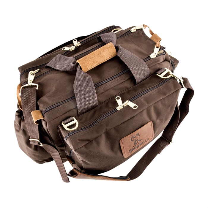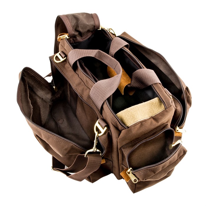 We’ve incorporated many of the same great features of our original Signature Series Range Bag into a slightly smaller, more compact bag with bellows pockets, adjustable dividers, six individual shotshell holders and much, much more. Constructed of long lasting, 1000 denier, Cordura® nylon with non-scratching, self-healing, nylon YKK zippers and solid brass pulls. We put top-grain, leather straps on the zipper pulls to make opening and closing the “high-use” compartments easy when wearing shooting gloves. Adjustable, detachable shoulder strap is constructed of strong, 1½" wide nylon webbing and includes a comfortable pad lined with non-slip, suede leather. Quick-detach, brass-plated swivel clips are spring loaded for extra security and ease of removal. Double-layered, 3/16" thick, corrugated bottom panels provide full support for heavy loads of ammunition, pistols, tools, and other shooting accessories, while retaining the original shape of the bag. The Signature Series Shooting Bag is a full-featured bag designed to perform and built to last.