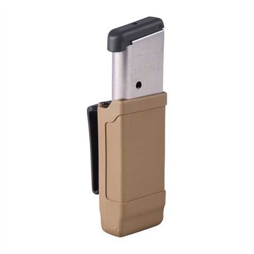 The Blackhawk Single Mag Case provides quick and easy access to spare magazines while maintaining adequate retention. Using a built-in tension spring, the Blackhawk Single Mag Case hold magazines of various sizes securely in place. Made of durable injection molded polymer Adjustable belt-clip hook Accepts 9mm, .40, .45, 10mm, and .357 Sig mags The Blackhawk Single Mag Case uses an adjustable belt-clip hook to accommodate belts of different widths.