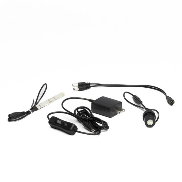 Systemet levereras komplett med en 110-pluggadapter med 48" lång sladd, av/på-brytare, ledningsfästen och buntband.