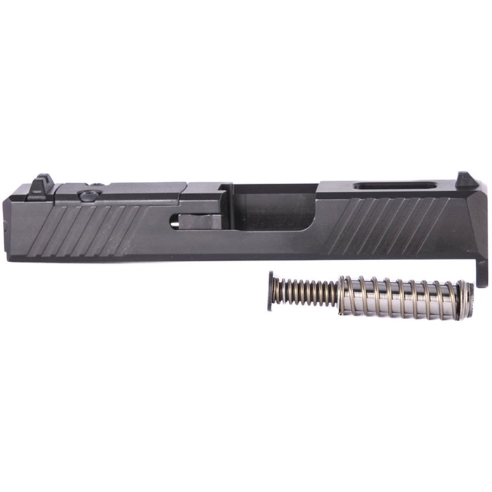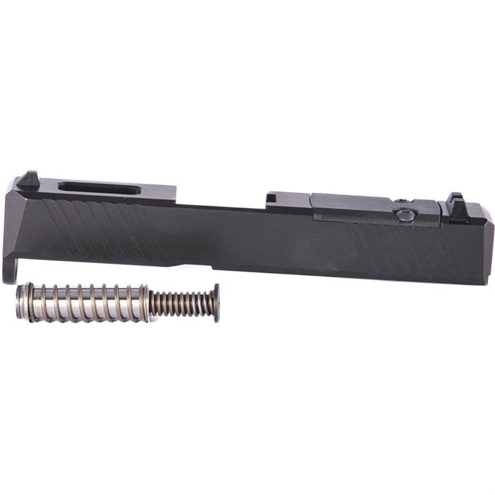Build a Compact Custom EDC Pistol With Integral Red Dot Sight Mount Do you want to upgrade for your factory G43 or build a brand-new custom gun on a compatible frame from another manufacturer? The Brownells Slide for Glock® 43 pistols is just the ticket for this project! Our slide features a pre-cut slot for easy, secure, low-profile mounting of a reflex red dot sight that fits the Holosun 407K footprint (adapter plates are available separately for RMR sights). If you're not mounting a red dot at the moment, we've included a lightweight polymer cover plate to neatly fill the slot. Our G43 Slide comes with standard-height front and rear sights, which can serve as your primaries or as backup "iron" sights when paired with a red dot sight. You can get your Brownells RMR Slide for Glock® 43 with the standard solid top or with a "window" cutout up front that enhances air flow to cool the barrel - ideal for hard-working action competition pistols. If you have an upgraded barrel with a contrasting finish or a unique exterior pattern (fluting, spirals, flames, etc.) the window lets you show it off! Or install our ported barrel for Glock 43, and combustion gas venting from the barrel ports through the window will counteract muzzle rise and help you keep the sights on the target for subsequent shots. There's no need to install a bulky compensator on the muzzle, which means your new comped pistol will still fit holsters for the standard Glock® 43. Fits Glock® 43 pistols & clones Built-in mounting slot for reflex sights with the Holosun 407K footprint Optic slot cover plate & recoil spring assembly also included Factory front/rear iron sights installed Machined from 416 stainless steel billet, black Nitride finish Available with traditional Solid top or distinctive top Window cutout Each of our slides for Glock® starts life as a billet of 416 stainless steel that is machined to Glock® factory specifications inside, so it’ll accept factory or aftermarket barrels and internal "small" parts. Each slide comes with a tough, wear-resistant black Nitride finish. This slide fits standard Glock® factory G43 frames and compatible aftermarket frames. On the sides at the rear, you'll find distinctive wide, shallow cocking serrations that give excellent "purchase" to rack the slide, plus a mirror set of serrations up front that aid in manipulating the slide to press-check the chamber. Both sets of serrations make it easy to manipulate your pistol's slide from any angle and in any position. And we'll admit it: these serrations just look cool, too! Whether you're doing an ambitious "built from scratch" custom pistol or you're upgrading a factory Glock 43 for enhanced versatility, a Brownells slide is the perfect component for your project! Brownells Gun Tech™ Note: Channel liner required for these slides (#078000649). Channel liner is a press fit and requires a tool to install; we recommend #777100017.