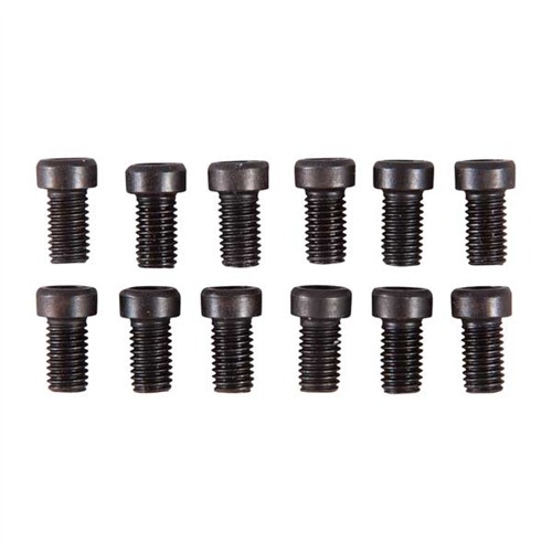 Specifikationer: Tillverkad i USA med samma huvud/form-specifikationer som de slitsade siktbas-skruvarna. 3/32" socket. Blånerad. Kitet inkluderar: 168 skruvar, uppdelad Kit Box, pincett, Checker/Shortener Jig och diagram som visar baser/ringar/ribbor etc. som skruvarna passar till. Påfyllningar säljs 12 per paket. 3/8" (9,5 mm), ½" (12,7 mm), ¼" (6,35 mm), 9/16" (14,28 mm). Varje skruv kan kräva mindre anpassning.