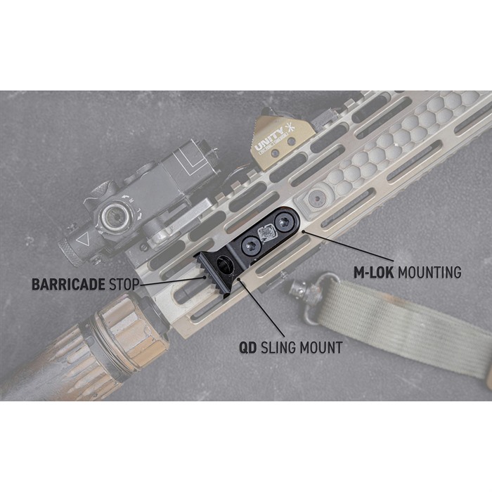 Sons Of Liberty Gunworks Presscheck Barricade Stop är en precisionskonstruerad MLOK-tillbehör som uppnår två funktioner på samma yta; den fungerar både som en Barricade Stop och en QD Sling Mount.