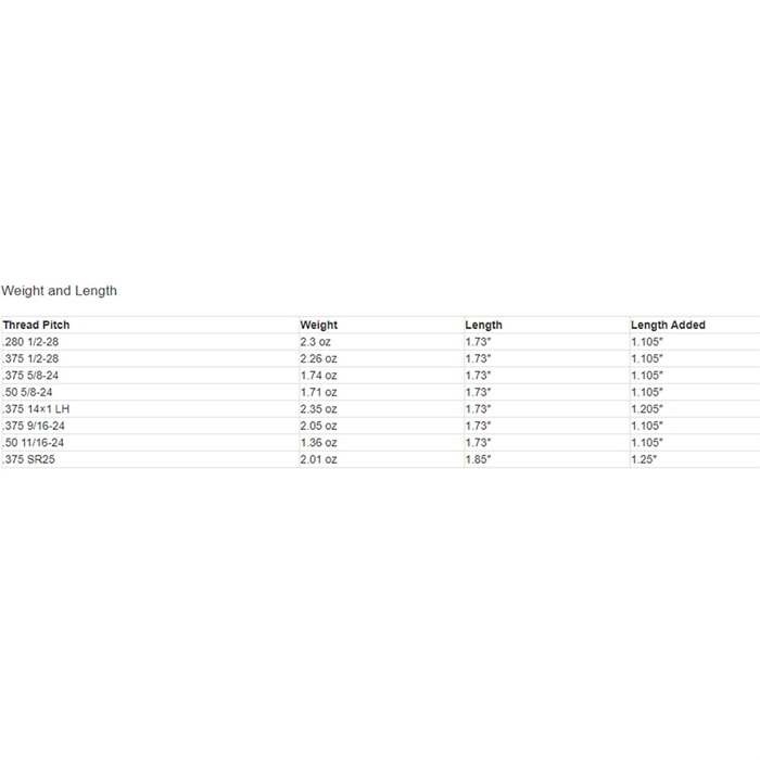 850035804049 SPB MUZZLE BRAKES Dessa passar för Plan B-typens fästen. Använd alltid en justeringsstång för att säkerställa att hela systemet är korrekt inställt. Se till att alla ytor är rengjorda och att ljuddämparen har dragits åt och Rockset:ats till pipan. Användning på en Q-dämpare gör att garantin ogiltigförklaras, var försiktig. Dra åt ljuddämparen till cirka 15-25 ft lbs. Se till att ljuddämparen är vinkelrät mot axeln. När du sätter dämpare på ljuddämparen, se till att gängorna och konerna är rena. Dra åt dämpare till 10 ft lbs. Kontrollera justeringen. Njut. Nitride-finishen ger en tätare försegling, med det sagt är det extremt viktigt att dra åt och Rockset:a din ljuddämpare till pipan korrekt. EGENSKAPER: 17-4 PH H900 Atlas och Atlas XL-kompatibel Plan B-kompatibel Atlas-adapter Överdragning cirka 1.050″ Atlas XL-adapter utan överdragning Svart Nitride-finish (67 HRC ythårdhet) Shimar ingår* FÖRUTOM *Shimar ingår inte med SR25/M110 eller 11/16×24Restorder. Skickas när den finns i lager. Leveranstid ca 4-12 veckor från centrallagret.