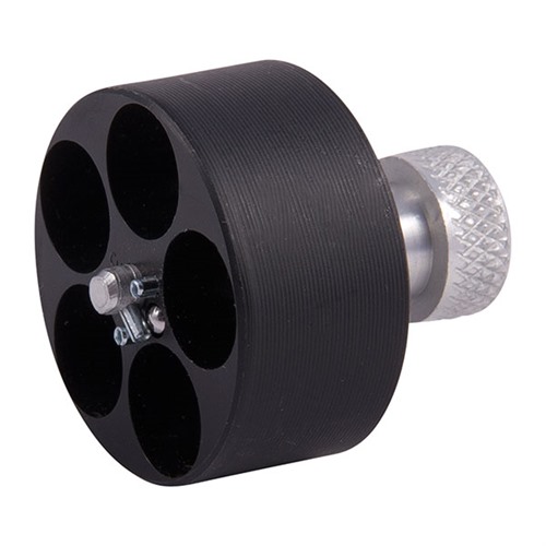 Compact, lightweight carrier provides an excellent combination of reloading speed, secure carry and dependability. Cartridges are held securely until you’re ready, then release with just a twist of the knurled knob. Simple to load: turn the knob to the load position; set rounds in place; twist the knob to latch. Metal cam points move into place over the cartridge rims. To load the gun: guide the bullet noses into the cylinder, twist the knob and ammo instantly drops into place.