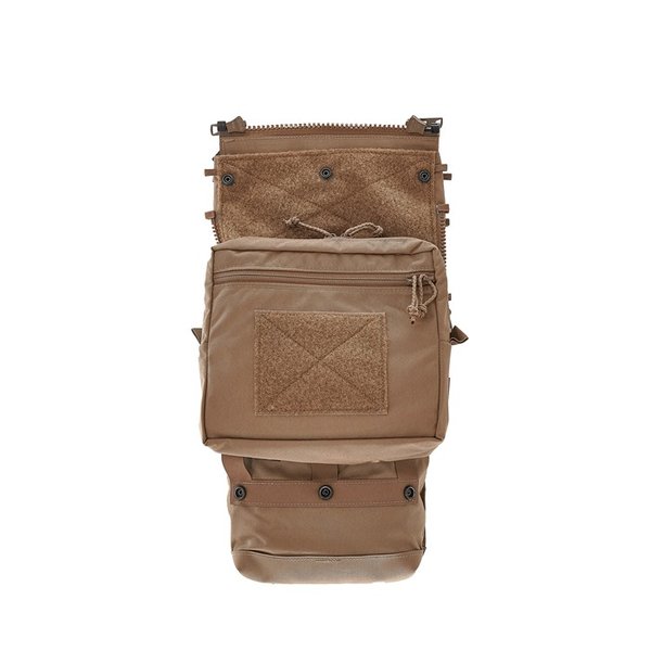 Använder de övre dragkedjorna för att fästa panelen vid plattväskan. Detta komprimerar panelen och gör att den kan bäras i en "lätt" konfiguration, perfekt för assaulters som behöver en strömlinjeformad och tight konfiguration för att bära en liten hydreringblåsa, slap charges, flash bangs och GP-kit.