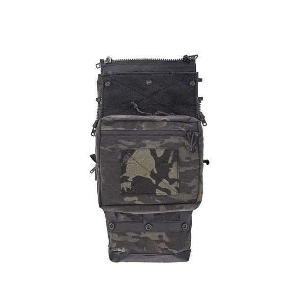 ASSAULT BACK PANEL CORE levereras med en permanent fäst stor GP-ficka på den nedre halvan, som är velcro-fodrad för fäste av tillbehör. Den har två fästöglor inuti fickan för att säkra känslig utrustning. Fickans framsida har en dragkedjeficka för organisering av mindre, ofta använda föremål och en 4" x 5" Velcro-fält för att fästa identifieringspatchar. Bakom GP-fickan finns en dold förvaringsfack för att lagra den nedre halvan av slap charges eller breach pens.