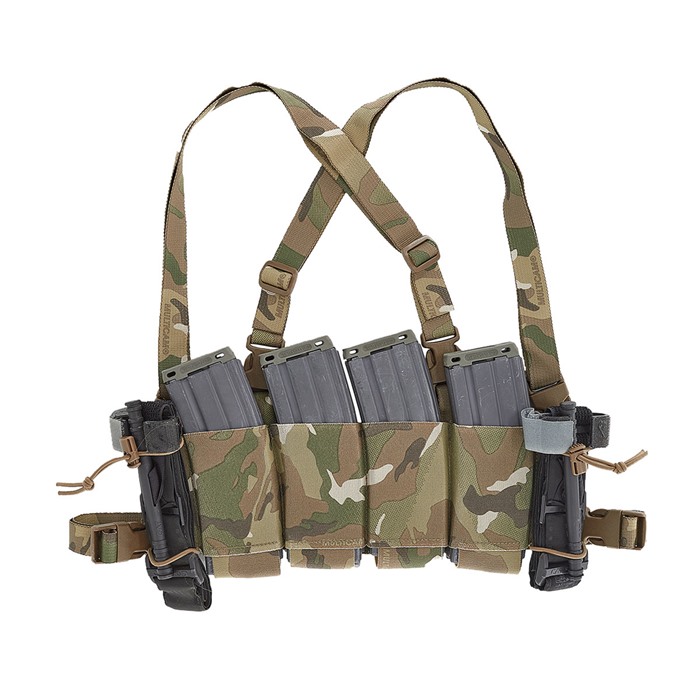 Bröstbärsystemet är helt konstruerat av elastiskt material, vilket gör att det kan anpassa sig och behålla udda formade föremål såsom rökgranater, flashbangs, magasin och tourniquets.