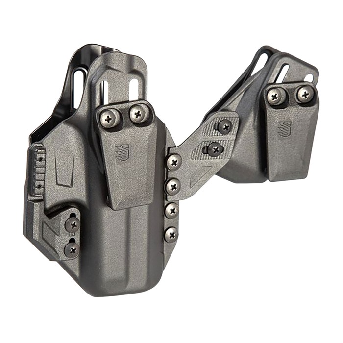 - Premium-konfigurationen inkluderar justerbar dölja-klor för att minska tryck, justerbar inuti-midjan magasinbärare med bälteklipp och en tillbehörsvinge för att förena holster och magasinbärare till en plattform.