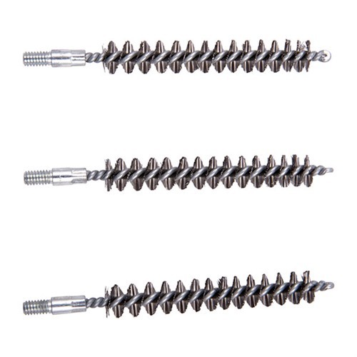Dessa STANDARD LINE STAINLESS STEEL CENTER FIRE RIFLE BORE BRUSHES är designade för att ge en aggressiv rengöring av kraftigt belagda, smutsiga eller rostiga lopp. Den aggressiva rengöringsåtgärden hos en borste av rostfritt stål kan hjälpa till att få dem rena, men det är viktigt att notera att den aggressiva åtgärden kan påskynda slitage och regelbunden användning kan förkorta livslängden på pipan.