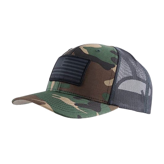The Magpul Standard Patch Trucker Hat This has hat is a structured, six-panel trucker-style hat, that features a woven Magpul American Flag patch located front and center of the hat. It’s got a mesh back and a mid-crown design, so the brim rests just above the brow and stays comfortable all day. There’s no button on the top of the hat, making it great for use with over-the-head hearing protection. Mesh back and eyelet vents for breathability Adjustable snapback closure Interior custom Magpul branding No top button for comfort when using over-the-head hearing protection Woven patch at center front 60% Cotton/40% Polyester