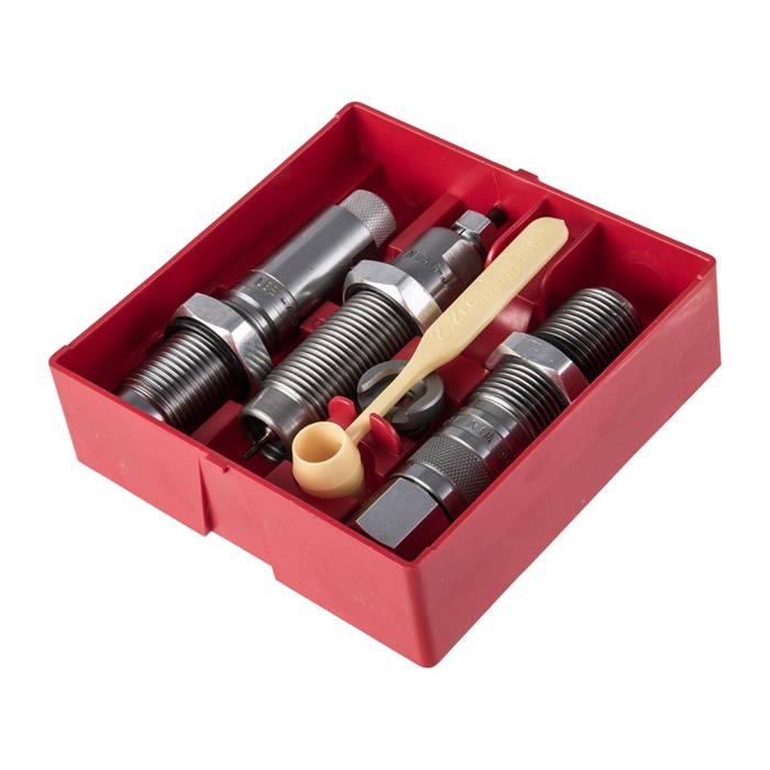 734307908003 Lee Steel 3-Die Rifle Set inkluderar Full Length Sizing Die, Bullet Seating Die och Powder Through Expanding Die, Universal Shell Holder, Powder Dipper och Instruktioner/Lastdata. Dessa dies är av stål, inte karbid, så hylsorna behöver smörjas.Levernastid ca. 14-21 dagar.