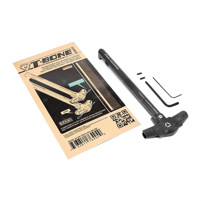 The Strike Industries T-Bone Charging Handle for .223/5.56 AR-15's feature a patented gas redirect system that allows you to configure the gas to exit only left, only right or evenly to both sides. The shaft of the charging handle is machined from 7000 series aluminum which excels in applications requiring lightweight and high strength. However, with comfort and control in mind, the T-Bone latchless handles are made from SI PolyFlex polymer. The handles can be easily swapped with optional (coming soon) different sizes and styles. The latchless feature of the T-Bone gives minimal wear and tear on your AR upper receiver compared to traditional charging handles on the market. The Strike Industries T-Bone Charging Handle for .223/5.56 gives you a modular way to direct the gas and setup the feel and look for one of the most overlooked and essential part of your AR upper receiver. COMPATIBILITY: AR-15/M4/M16 upper receivers NOT COMPATIBLE: AR-10 upper receivers