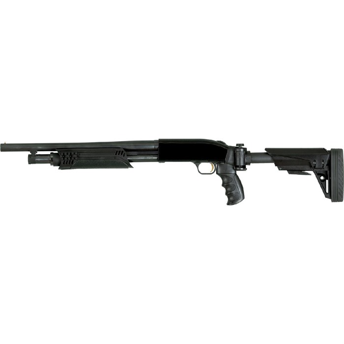 STRIKEFORCE GEN2 SHOTGUN STOCK W/TRACLOCK FITS: Maverick 88 12ga & 20ga (proud fit) Mossberg 500/535/590/835 12ga & 20ga (proud fit) Remington 870 12ga, and, Winchester 1200/1300 12ga & 20ga (proud fit) For the Winchester SXP you will need an additional adaptor FEATURES: Stock Side-Folds to the Left of the Receiver Can be Fired from Folded Position TactLite GEN2 Six-Position Adjustable Stock with TracLOCK System Eliminates Horizontal & Vertical Movement of the Stock on the Buffer Tube Provides Smooth Secure Stock Adjustments Eliminates the Need for Secondary Locking Mechanisms No Snag Points Dual Sided QD Attachment Point Removable/Adjustable Cheekrest System Elongated Design to Fit All Users Includes Short Cheekrest with 1/2” of Adjustment Extreme Temperature Glass Reinforced Polymer Buffer Tube X1 Recoil Reducing Pistol Grip Sure-Grip Texture Recoil Impact is Absorbed Not Affected by Chemicals or Extreme Temperatures X2 Recoil Reducing Butt-Pad Upgraded 1 1/4″ Thick Pad Recoil Impact is Absorbed Reduces Muzzle Lift Eliminates the Felt Punch of the Recoil Shoot Any Load Size with No Pain Transfer to the Shooter Not Affected by Chemicals or Extreme Temperatures Scratchproof & Weatherproof Made in the USA Easy Installation Adapters for All Supporting Models Included All Mounting Hardware Included
