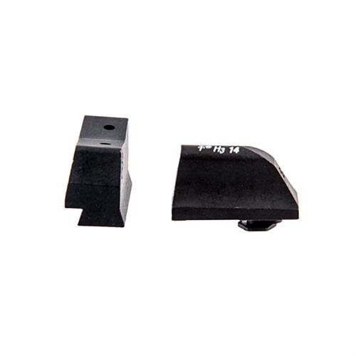 Suppressor Height high-visibility sight combinations put you on target faster in high stress or low light conditions by pulling your eyes to the front sight. Sight set includes non-tritium, white line V-notch for the rear sight, green tritium dot surrounded by a white ring for the front. Low profile, no-snag design is great for carry and combat competition guns. Matched sight sets offer direct replacement of factory sights. The Standard Dot front sight has an easy-to-see white ring surrounding the tritium dot. Airlite Ti replaces pinned front sight on fixed sight guns, requires drilling for pin.