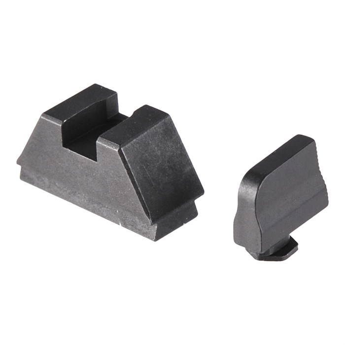 Suppressor height sights allow for a proper sight picture when firing a suppressed Glock or when using an RMR equipped slide such as the Tactical Glock Slide from One Source Tactical Night Sight model includes Trijicon Tritium inserts Nights Sight has a 3-Dot sight picture, with the Tritium illuminating green on both the front and rear sight The standard Suppressor Sight set does not feature dots or Tritium, allowing for a clean sight picture The standard front sight features a serrated face, for an anti-glare sight picture The standard set is an excellent option when using iron sights as backups on an RMR equipped slide Machined steel construction Matte black finish