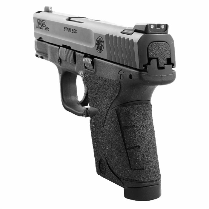 The Smith & Wesson M&P Compact is sized right for concealed carry, offering enough personal-defense firepower in a package that can be carried with ease. However, the compact size comes at the cost of less grip space, and the Talon S&W M&P Compact Small Backstrap Grip Tape helps to anchor the grip frame in a user's hands. The Talon S&W M&P Compact Small Backstrap Grip Tape provides an enhanced texture on both sides of the grip frame, as well as on the thumb rests, beneath the trigger guard and on the backstrap of the pistol. Comes in rubber or granulate styles Color: black Features all control cutouts The Talon S&W M&P Compact Small Backstrap Grip Tape uses adhesive that anchors onto any frame solidly but can be removed easily without damaging the gun's frame.