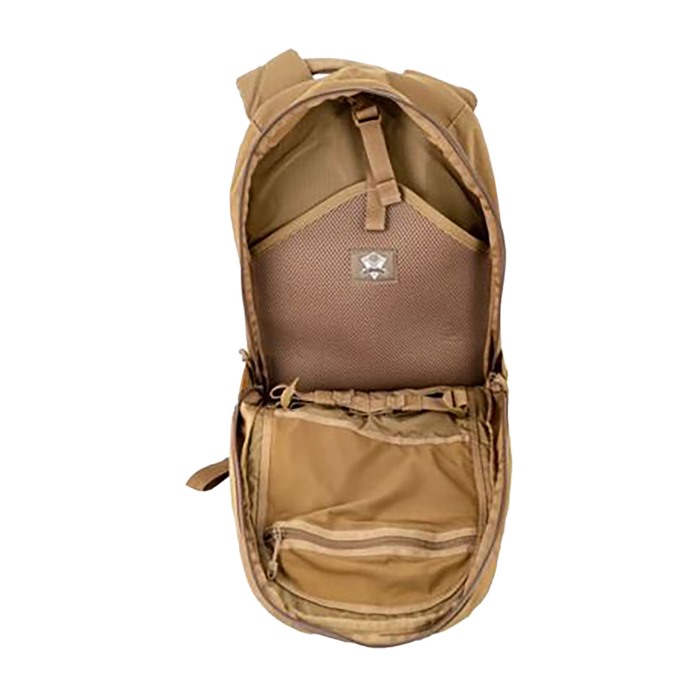 Scarab Day Pack har också imponerande funktioner. Den börjar med det dubbla fackets främre ficka designad för att se ut som en enda ficka, vilket gör det lite enklare att gömma diskreta föremål. Den sträcker sig till det inre facket där laptopfacket och remmen håller din teknik säker. En semi-transparent ficka på insidan av frontpanelen gör det enklare att leta efter udda utrustning, och under den finns två fickor med snörremmar som gör det enkelt att bära AR-15 magasin, eller… vad du nu kan behöva ha med dig.