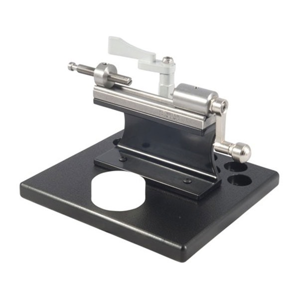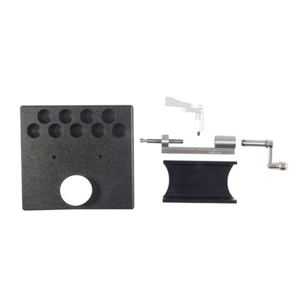 “SharkFin” Case Holder Clamp svänger snabbt på plats och ger nedåtriktat tryck på patronhållaren under trimningen. Kitet inkluderar också Sinclair Trimmer Platform, som möjliggör bärbar och stabil användning av L.E. Wilson-trimmern.