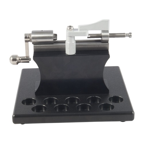 L.E. Wilson Case Trimmer och Sinclair Monteringstång med "SharkFin" Hållare för Patroner (beställ patronhållare separat). Denna monteringsstång och klämsystem gör patrontrimning mycket snabbare och bekvämare. "SharkFin" Hållare för Patroner svänger snabbt på plats och ger nedåtriktad tryck på patronhållaren under trimningen. Detta kit inkluderar också Sinclair Trimmer Plattform. Plattformen möjliggör portabel och stabil användning av L.E. Wilson trimmern. Den har 9 platser för ytterligare patronhållare samt en tappblock för att slå in och ut patronerna ur hållaren. Plattformen levereras med gummifötter och kan användas för sig själv eller C-klämas fast vid bänken för ökad stabilitet.Restorder. Skickas när den finns i lager. Leveranstid ca 4-12 veckor från centrallagret.