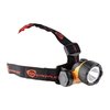 If you often find yourself needing to illuminate objects at a distance, the long-range capability of the Argo delivers a far-reaching beam of 190 meters. You may prefer the features of this headlamp if you’re checking utility lines from the ground or moving about during outdoor activities and need to see where you’re going and what’s ahead. Part #61301 Features one white C4® LED with three output modes: High for maximum output with a long-range beam distance: 150 lumens, 9,250 candela peak beam intensity, 3 hour run time, 190m beam distance Medium for intense brightness and longer run time: 100 lumens, 6,375 candela peak beam intensity, 4.5 hour run time, 160m beam distance Low for extended run times and when less intense light is needed: 45 lumens, 2,750 peak beam intensity, 30 hour run time, 103m beam distance Push-button switch is easy to use when wearing gloves and is recessed to protect it from inadvertent activation Powered by 3 “AAA” alkaline batteries (included); also accepts 3 “AAA” lithium batteries Low-level battery indicator visible in the facecap of each light Red LED flashes when battery voltage is low and batteries are near the end of their usable life LED is located in the reflector in between the “Low Batt” marking and functions while the light is on 90º tilting head features a robust ratcheting system; prevents neck fatigue Durable, co-molded rubber body IPX4 rated for water resistance; 2 meter impact resistance tested Includes elastic head strap and rubber hard hat strap 5.4 oz. (153 g)