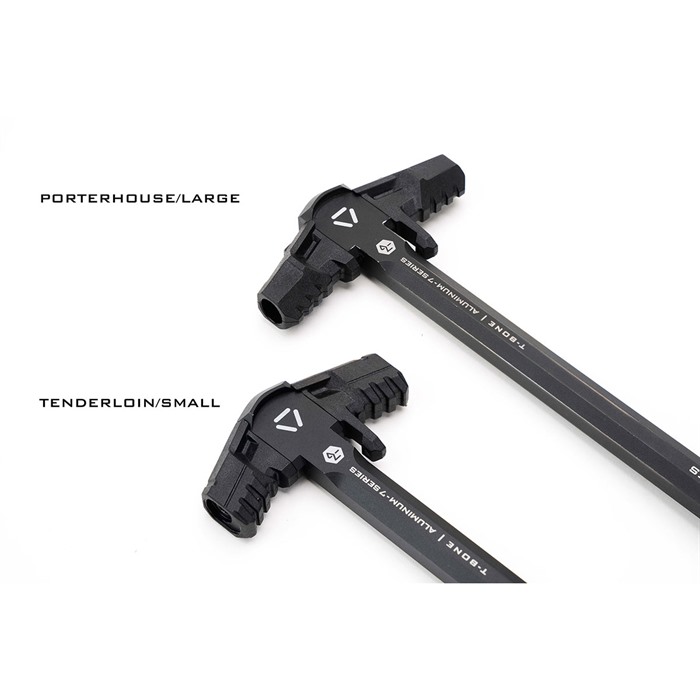 T-Bone-laddhandtagen är tillverkade av SI PolyFlex-polymer, vilket minimerar slitage på din AR-övre mottagare jämfört med traditionella laddhandtag på marknaden. Strike Industries Porterhouse eller Tenderloin T-Bone Charging Handle Latches ger dig ett modulärt sätt att styra gasen och ställa in känslan och utseendet för en av de mest förbisedda och viktiga delarna av din AR-övre mottagare.