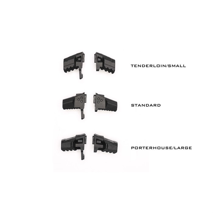 793811765632 Dessa utbytbara T-Bone-lås har det patenterade gasomdirigeringssystemet från SI som gör att du kan konfigurera gasen att endast gå ut till vänster, endast till höger eller jämnt på båda sidor. Med komfort och kontroll i åtanke är T-Bone-låslösa handtag tillverkade av SI PolyFlex-polymer. Den låslösa funktionen hos T-Bone ger minimal slitage på din AR övre mottagare jämfört med traditionella laddhandtag på marknaden. Strike Industries Porterhouse eller Tenderloin T-Bone Charging Handle Latches ger dig ett modulärt sätt att styra gasen och ställa in känslan och utseendet för en av de mest förbisedda och väsentliga delarna av din AR övre mottagare. Porterhouse/Större: Strike Industries Porterhouse T-Bone Charging Handle Latches (Större) är längre lås för dem som vill ha större. En större och längre yta för att öka grepp och hävstång för dem med större händer eller för att säkerställa att du aldrig missar ett steg för att komma tillbaka in i striden. Också oftast med större optik eller tjockare handskar, erbjuder större lås enklare hantering. Tenderloin/Mindre: Strike Industries Tenderloin T-Bone Charging Handle Latches (Mindre) är mindre lås för dem som vill ha en slank och smidig profil. Kortsiktiga kontroller för en lägre profil. Paketinnehåll: x2 T-Bone Charging Handle Latches - Höger & Vänster (Större eller Mindre) x2 Skruv [M3x8mm] x1 Insexnyckel [1,5mm] x1 Insexnyckel [3mm] x1 Loctite® Threadlocker Blue 243® Produktfunktioner: Utbytbara lås som enkelt kan bytas på SI T-Bone Charging Handle (STÖRRE) Större och längre yta för att öka grepp och hävstång (MINDRE) Kortsiktiga kontroller för en lägre profil SI patenterat gasomdirigeringssystem Konfigurera gasen att gå ut endast vänster, endast höger eller jämnt på båda sidor Låslösa modulära SI PolyFlex-polymerhandtag Minimal slitage på övre mottagare jämfört med andra på marknaden KOMPATIBILITET: Endast med Strike Industries T-Bone Charging Handles INTE KOMPATIBELT: Några andra märken och modeller av laddhandtag OBS: På grund av materialskillnader kommer färgerna på handtagets polymermaterial inte att matcha anodiserade aluminiumfärger ANSVARSFRISÄTTNING: Förvänta dig slitage på polymerlåset från övre mottagare baserat på olika märken, modeller och toleranser -CALIFORNIA PROPOSITION 65 VARNING:- VARNING: Denna produkt innehåller kemikalier som är kända av delstaten Kalifornien för att orsaka cancer och fosterskador eller annan reproduktiv skada. För mer information: www.P65Warnings.ca.govUpphört från Brownells