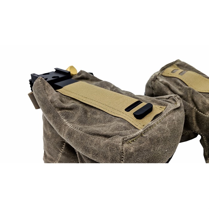 RailChanger-paketet möjliggör användning av en Pint-Sized Game Changer med full kontakt mot bredden av botten på geväret på ett säkert och justerbart sätt. Det kan användas i sin standard upprätta position eller på sidan med detta system. GameChangers som följer med denna kombination är skräddarsydda och har extra högstyrka, laserskuren tyg för att fånga armen som vi skapade. Armen kan också tas bort för normal användning av Game Changer. Finns antingen med standard 5 pounds fyllning eller lätt 3 pounds fyllning. INGÅR I KITTET: 1 – Anpassad Area 419 Game Changer Pint Sized 1 – ARCALOCK-klämma 1 – Area 419 Rail Changer-arm De flesta positioneringsskjutväskor är inte fyllda hårt medvetet. Anledningen är att en löst fylld väska fyller ut luckor, hänger över hinder och skapar en mer stabil skjutplattform än en hårt fylld väska.Levernastid ca. 14-21 dagar.