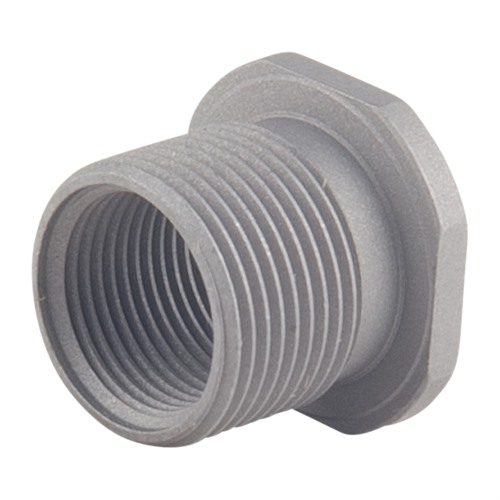 Denna adapter har både interna och externa gängor som är skurna med en enda punkt i samma operation, vilket ger tighta UNEF Class-3 toleranser för perfekt koncentriskitet och justering. Den kompakta designen flyttar muzzle-enheten endast .100” framåt, vilket bibehåller styrkan i hela gängförbindelsen.