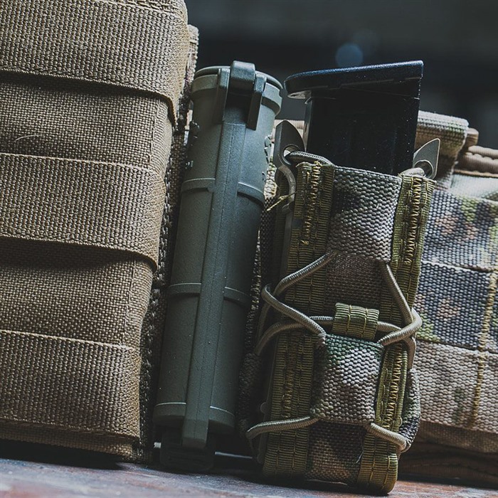 - Fästs vid PALS, MOLLE, webbband och remmar