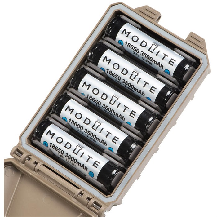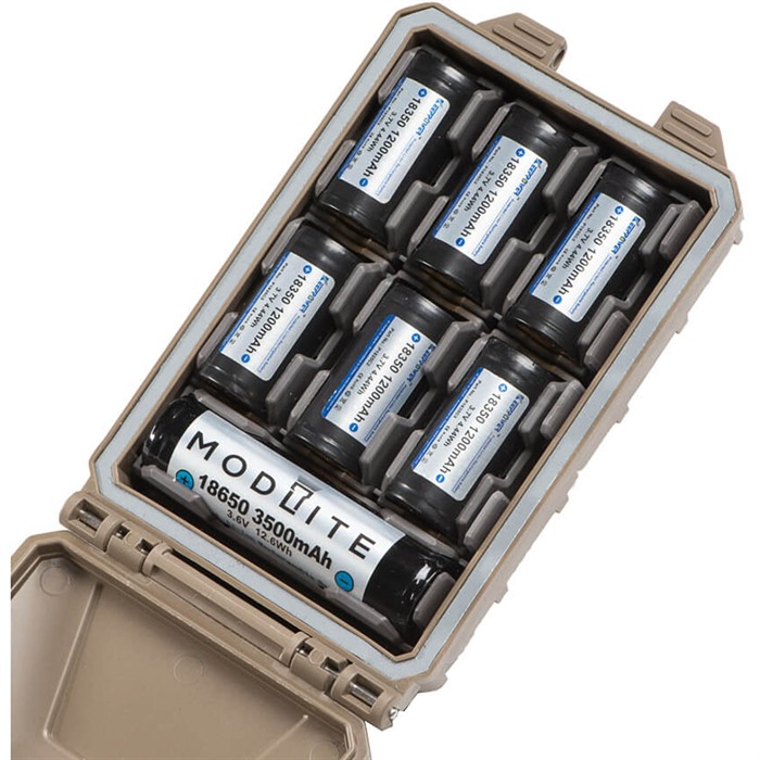 Thyrm tillverkar insatser för AA, AAA, CR123/16650, 18350, 18650 och 1632-batterier. När du kombinerar extra modulära insatser från Insatspaket med de som följer med CellVault-5M, är möjligheterna nästan oändliga.