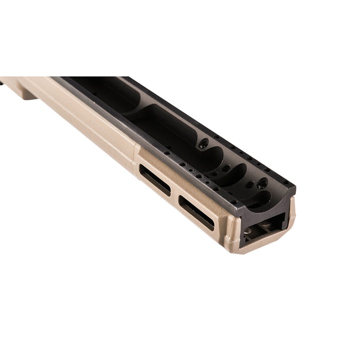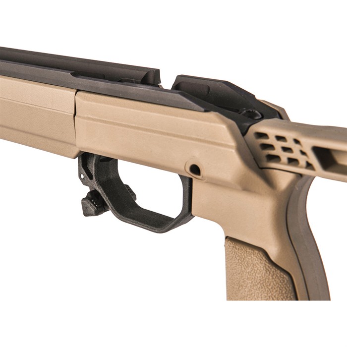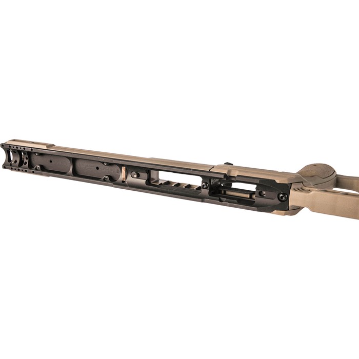Du får nästan identisk ergonomi som med Whiskey-3, med endast lite mer tid som krävs för att justera olika aspekter som längden på kolven. Dessutom får du alla standardfördelar med ett chassi, såsom användning av AICS-magasin, olika monteringspunkter för remmar, barriärstopp, och aluminiumblock för bäddning av åtgärden utan att behöva sälja en njure för att betala priset.