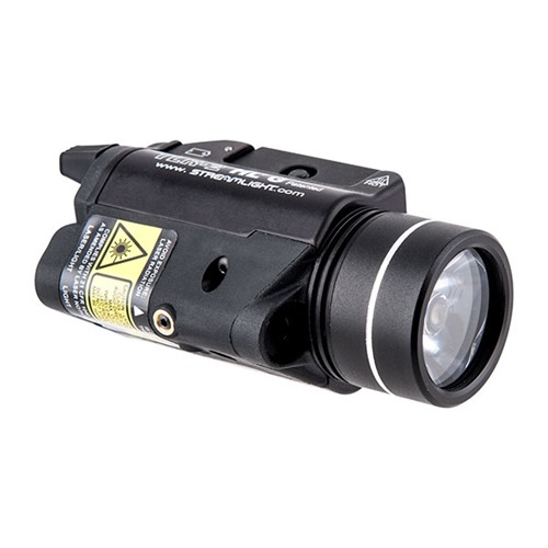 - Använd den ambidextrösa momentär/stadig på/avknappen för att aktivera ljuset och lasern.