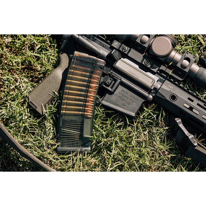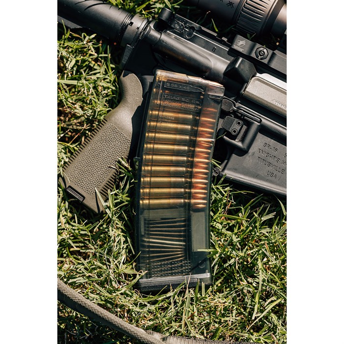 MAGPUL® TMAG® GEN M3 RIFLE MAGAZINE FOR AR-15/M4 är ett mycket pålitligt, genomskinligt magasin för STANAG-kompatibla vapen som är kalibrerade för 5.56x45 NATO/.223 Remington. Tillverkat av ett genomskinligt material med en ODG/Smoke nyans, ger det skjutna möjlighet att verifiera olika ammunitionstyper samt räkna skott.