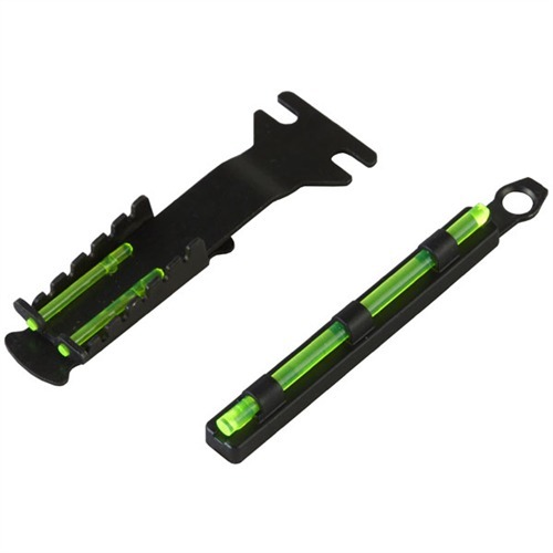 Glowing, naturally-lit dots for fast sight acquisition. Fits vent ribbed shotguns with rib widths between 11/64" and 7/16" and a removable front sight. Rear sight has two green dots and is adjustable for windage and elevation. Front sight has one green and one orange, interchangeable rod. Sights fit a variety of shotguns and kit includes 3-56, 3mm x .5, 3mm x .6, 5-40, and 6-48 installation screws.