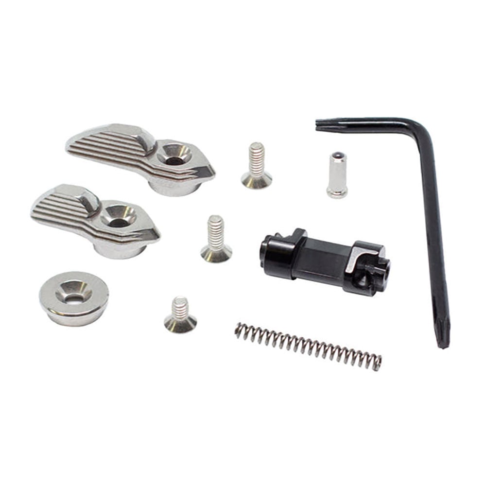 Tumblen är tillverkad av 440C rostfritt stål och DLC-belagd för ultra prestanda och hållbarhet. Spakarna är konstruerade av 17-4 rostfritt stål och den svarta versionen är belagd med PVD. Denna produkt är ett måste för alla tävlingsskyttar som vill förbättra sitt spel!