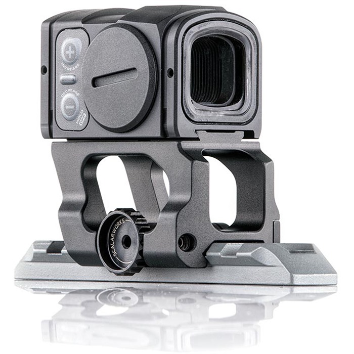 Tuff som en stridsvagn, men långt ifrån så skrymmande och extremt lätt, Scalarworks Sync RMR Mount är en solid plattform för att fästa en Trijicon RMR rödpunktsikte stadigt på din shotguns mottagare. Den är också konstruerad för att sitta på rätt höjd för co-witnessing med järn sikten.