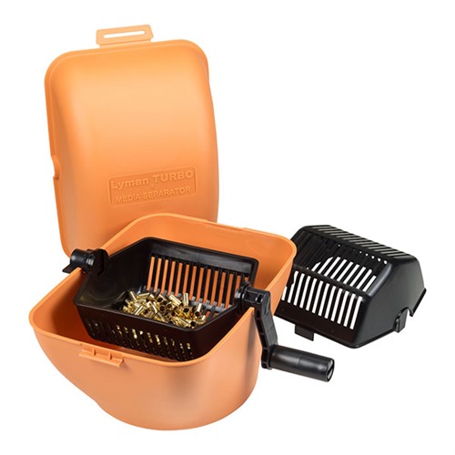Lyman engineers took a look at the media separators on the market and decided that they could do better. The result is a separator that incorporates many new features that makes the messy job of sifting media from cases much easier. The inner basket can be positioned to prevent it from moving as cases are poured in. The crank handle cover spins freely on the crank, making it much more comfortable to use. Improved latches provide a solid lock-up for the basket and the outer cover. The covers have interlocking edges to seal media and dust inside. Free spinning crank handle cover Improved latches for a tight lock-up of the basket and cover Can be used with either right or left hand Tight seal to trap media and dust inside