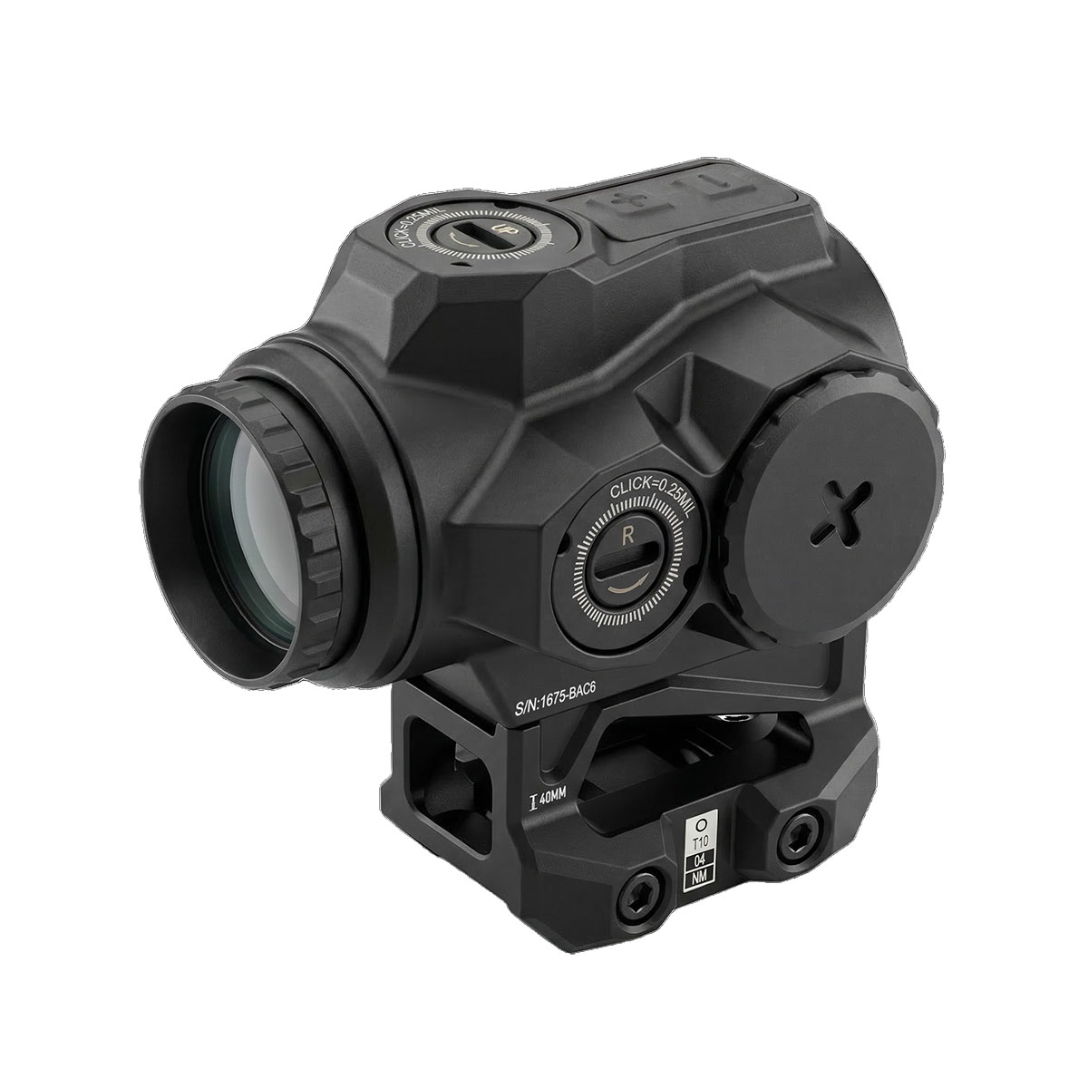 Vind- och höjdjusteringar följer MIL-standarden som används genom hela Hybrid-linjen, med 0,25 MIL-klick och ett totalt justeringsområde på 15 MIL, vilket säkerställer intuitiv nollställning och konsekvent systemintegration.