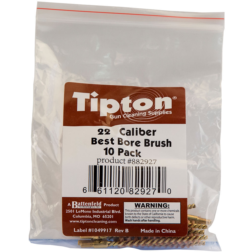 661120829270 Vi tror att Tipton® Best Bore Brushes är de finaste borstar som någonsin erbjudits. De uppfyller eller överträffar militära specifikationer och är designade för att tillfredsställa skytten som vill ha de bästa verktygen för att underhålla sina vapen. Kärnan är en enda bit mässingswire som passerar genom den gängade mässingskopplingen, vilket garanterar att kärnan aldrig kommer att separeras från kopplingen i loppet. Varje borste innehåller det maximala antalet borststrån som kan sättas in för kalibern. 20% mer än standardborstar! På grund av deras täthet rekommenderar vi att Tipton® Best Bore Brushes endast används med en kvalitets en-delad stång och en lämplig loppguide.Utgått från tillverkaren