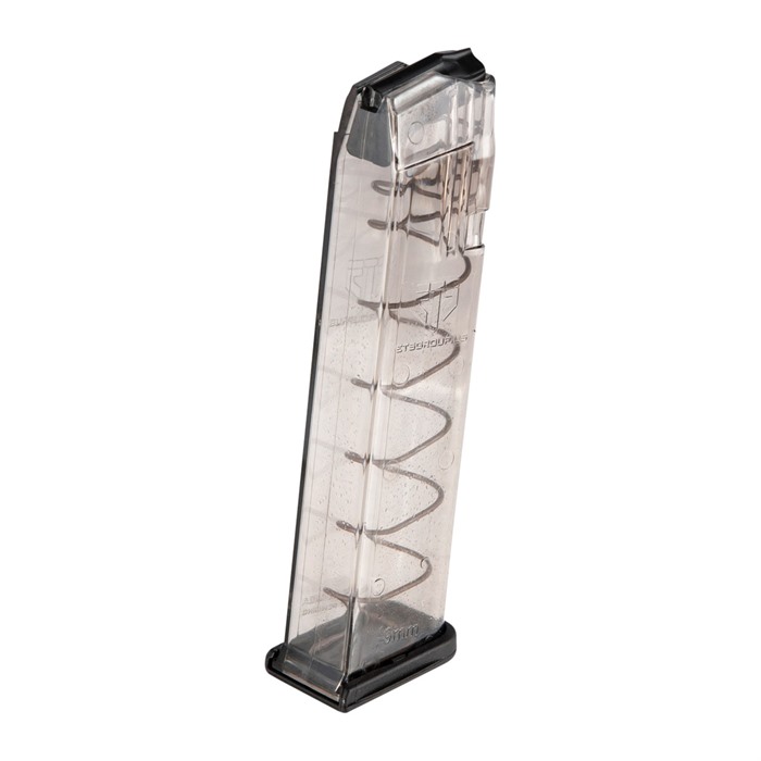 The ETS transparent magazines for Glock® pistols take visibility and safety to new level. Users are able to quickly determine the round count and ammo type from any viewing angle. These mags have been through rigorous testing, including several thousands of rounds without failure, using all generations and size of Glock® pistols. ETS magazines function with a variety of ammunition types & styles. Fully compatible with aftermarket base plates Reliably lock back the slide on empty magazine Drop free Easy disassembly for cleaning Specially designed base plate has a grip rib to aid in extraction Advanced Transparent Polymer Testing included Repeated drops from 8ft fully loaded without breaking or cracking Extreme thermal conditions ranging from -60 to 180 deg F for extended periods Extremely elevated UV exposure for several months to insure it will not become brittle. Unmatched chemical resistance including Deet, Fuels, Cleaners Creep resistant, your mag will not creep/spread when stored fully loaded
