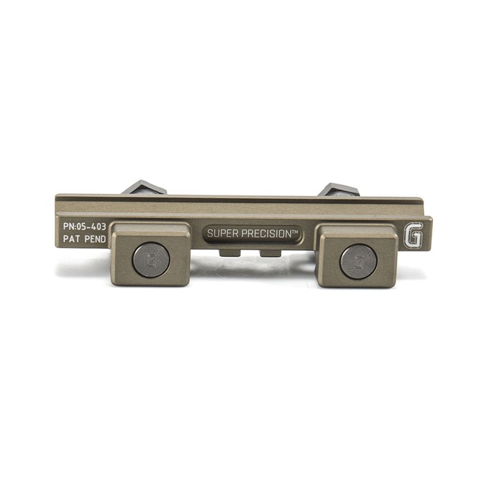 The Super Precision ACOG Series was developed specifically to work with the Trijicon 4x power ACOG series of optics. These mounts are precision machined from a single piece of 7075-T6 high strength aluminum and are available in both co-witness and lower third co-witness options. They are also available in black type 3 hard coat anodize as well as Geisseles' proprietary DDC (Desert Dirt Color) type 3 hard coat anodize. Utilizing Geissele’s update of the classic nut and bolt method, this mount will attach your red dot to your weapon with 1,400 pounds of clamping force, and features 3 shear lugs for maximum rigidity and return to zero.