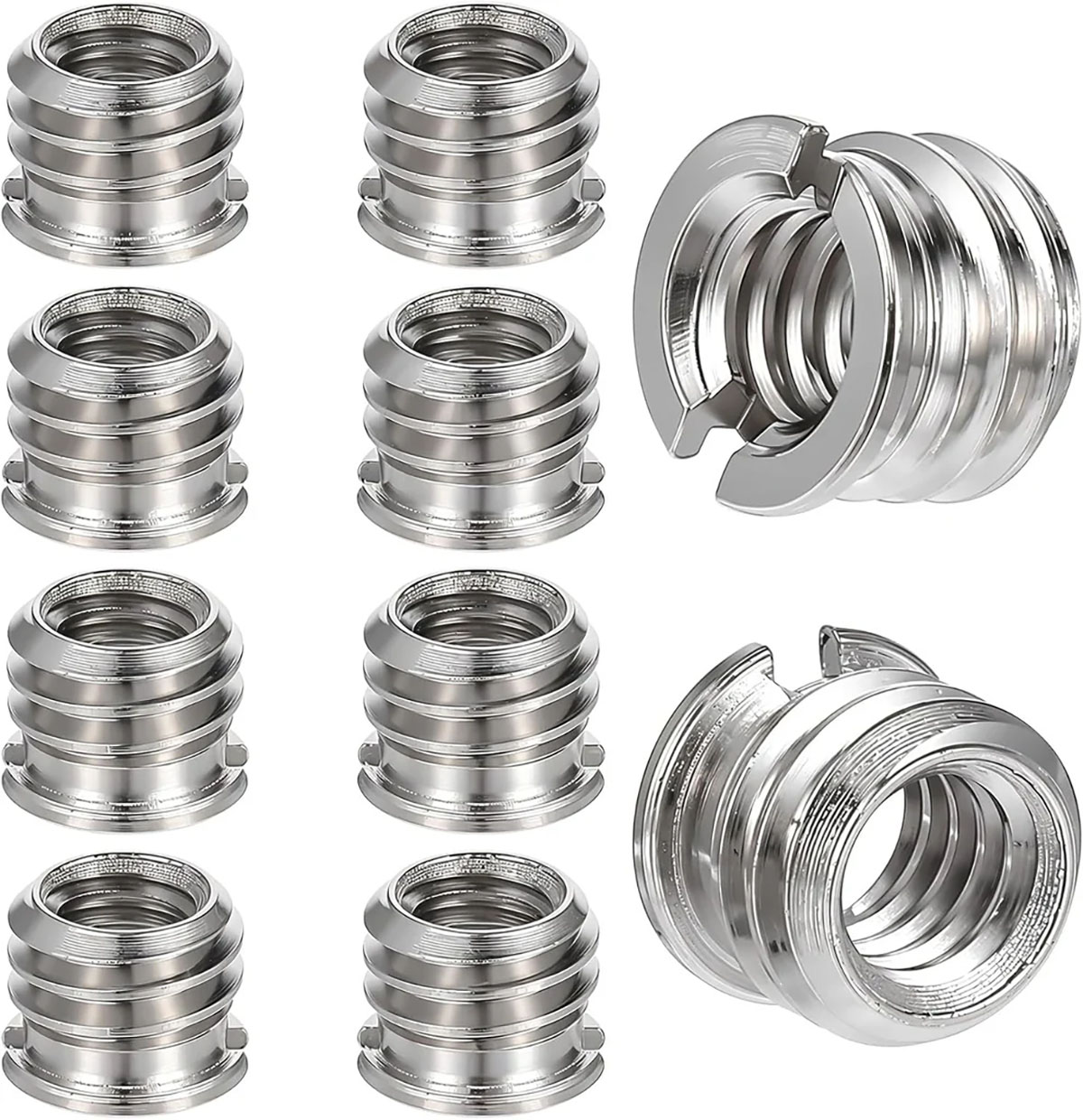 Denna kompakta reduceringsbussning / konverterare låter dig anpassa mellan två vanliga stativtrådstorlekar: 1/4"-20 hona till 3/8"-16 hane. Levereras i ett paket med 10 stycken, vilket gör den perfekt för att utrusta flera uppställningar eller för att ha reservdelar i din utrustning.