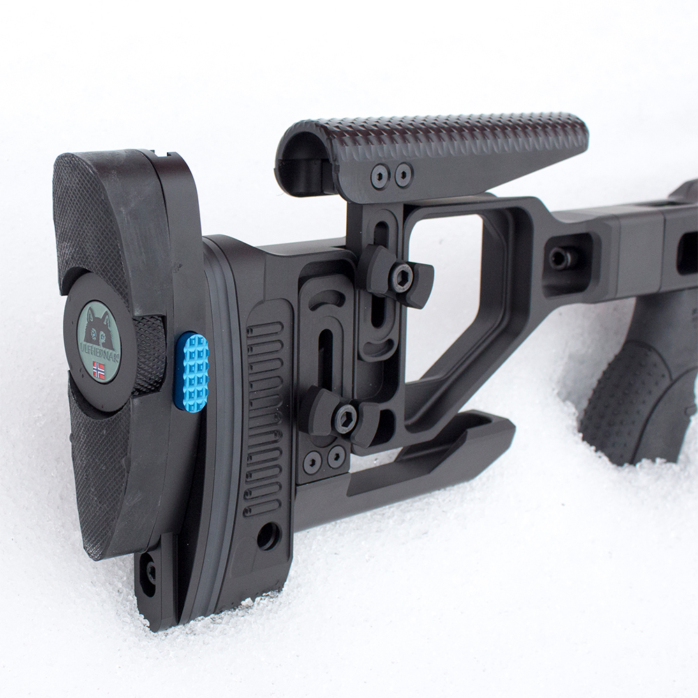Med den universella, snabbt justerbara Buttplate från Ulfhednar får du en liten, enkel och bekväm lösning för att minska din rekyl.